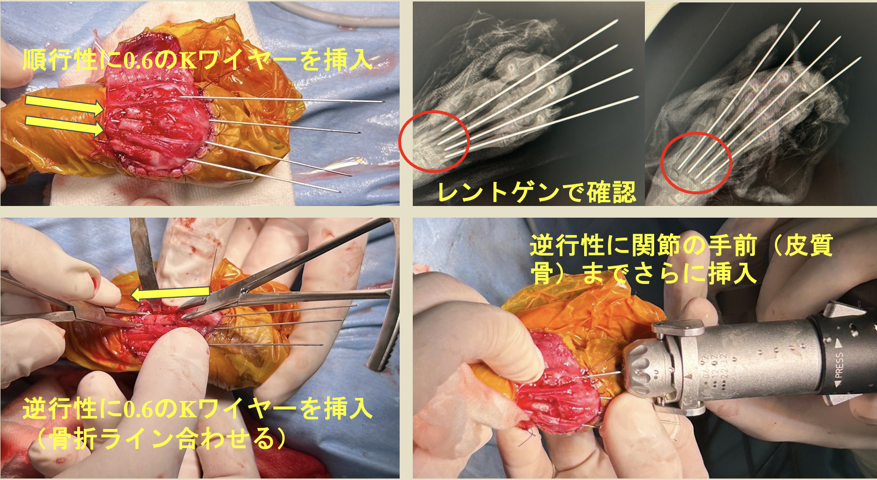 落下により夜間病院で外固定を行ったが、骨折ラインのズレが多く、外科的な内固定を行った