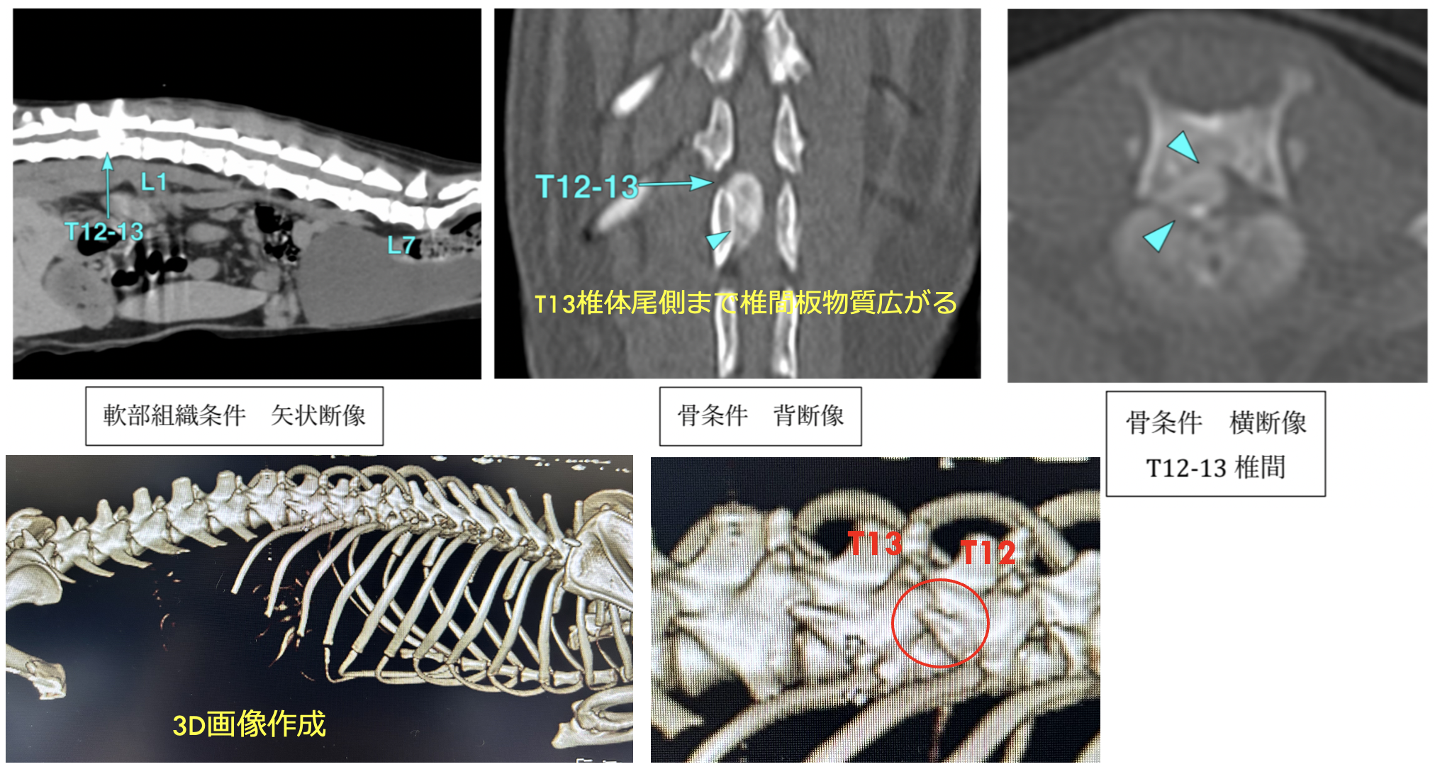 急に起立しなくなり、右後肢を引きずる歩行を示した。ステロイドにより一時的に回復するが、両後肢麻痺が認められた。