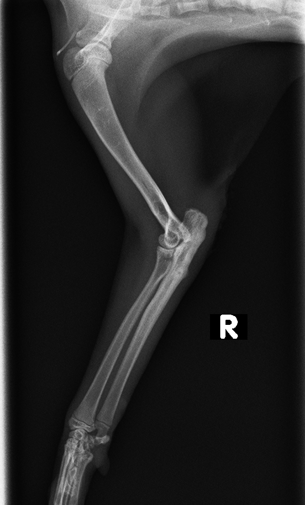 猫の肘頭骨折とは、まだ成長板が閉鎖していない若齢猫での発生が多く、成長板の部位で骨折することが多い。成猫では、成長板に関係なく肘頭骨折が起こります。