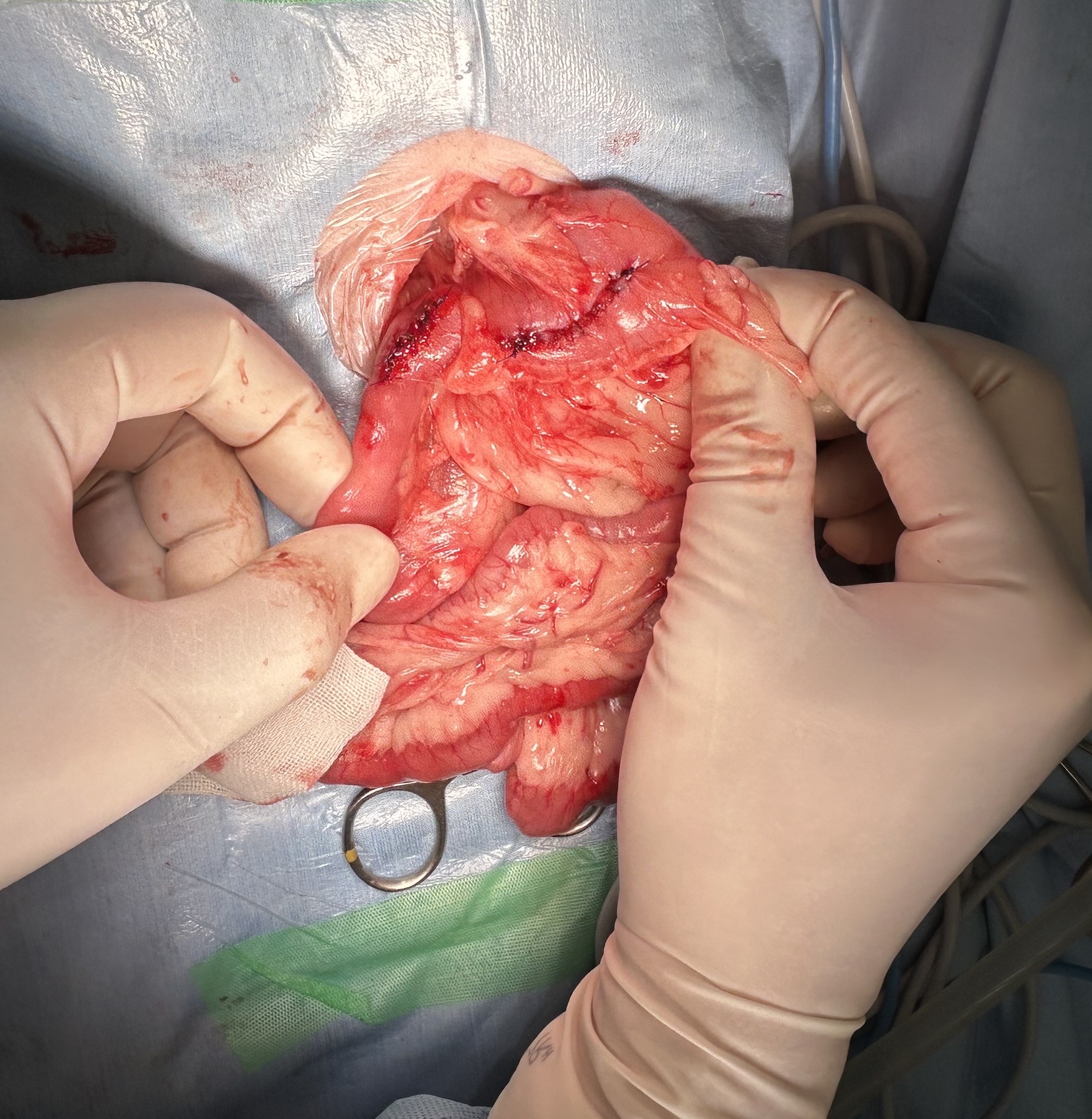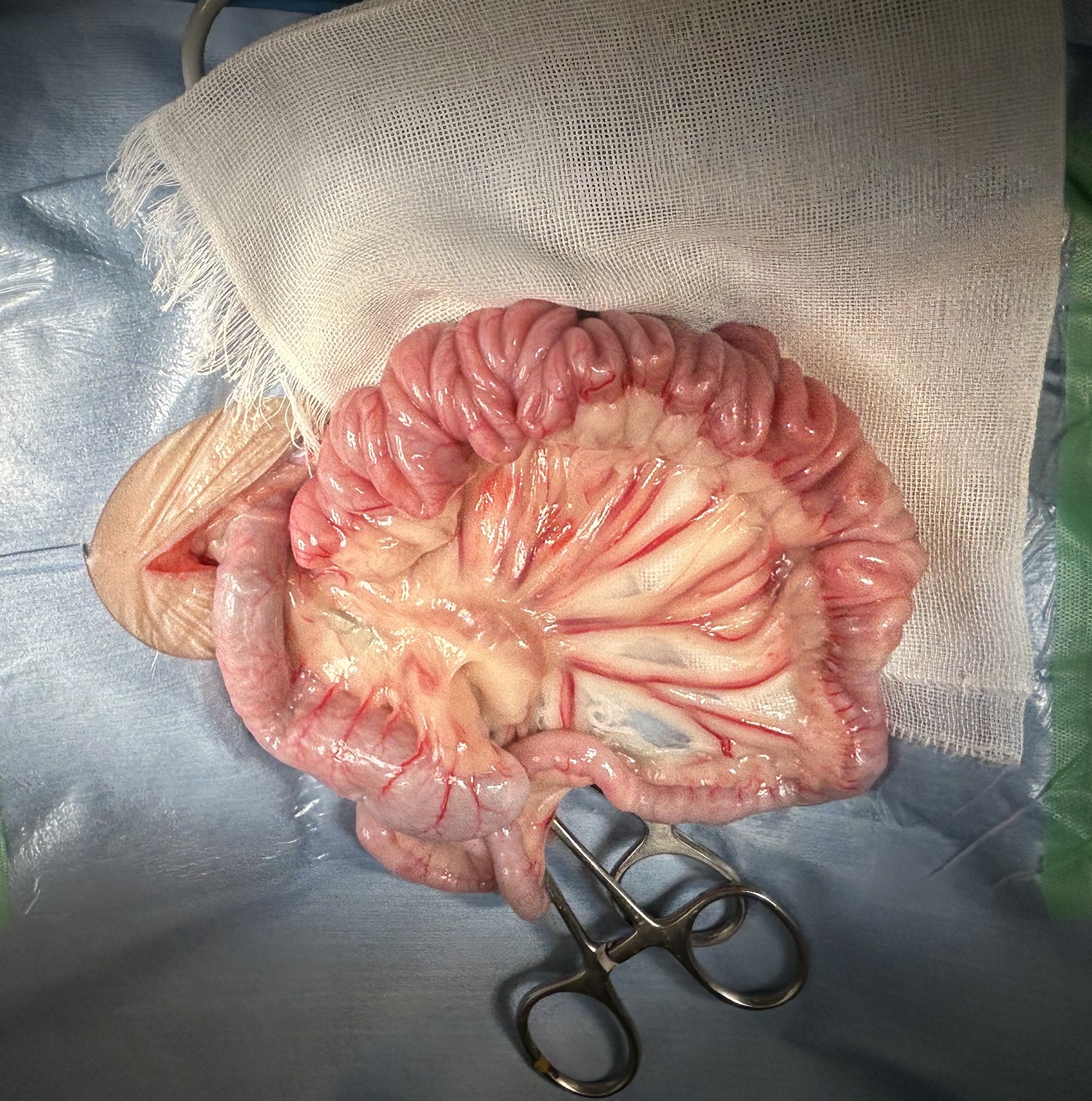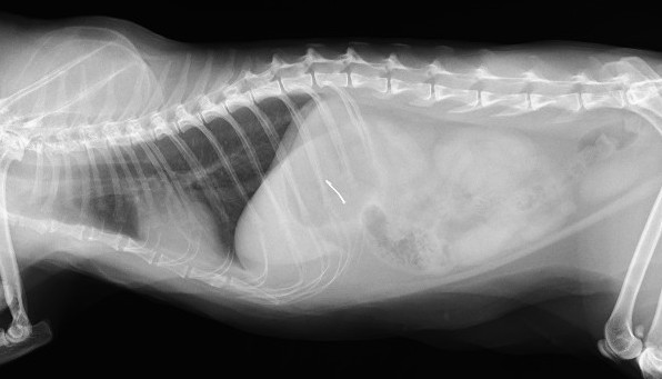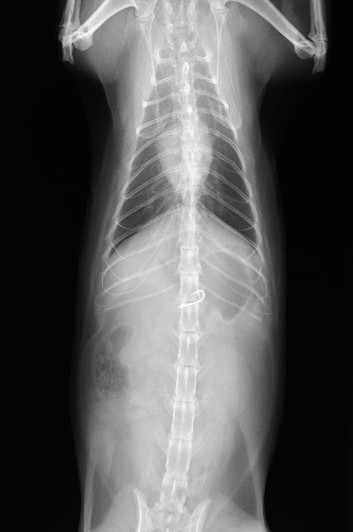 腸内の紐状異物は、動物が誤って糸や紐、ビニールテープなどを誤飲した場合に、腸に引っかかってアコーディオン状に手繰り寄せられる非常に危険な状態です