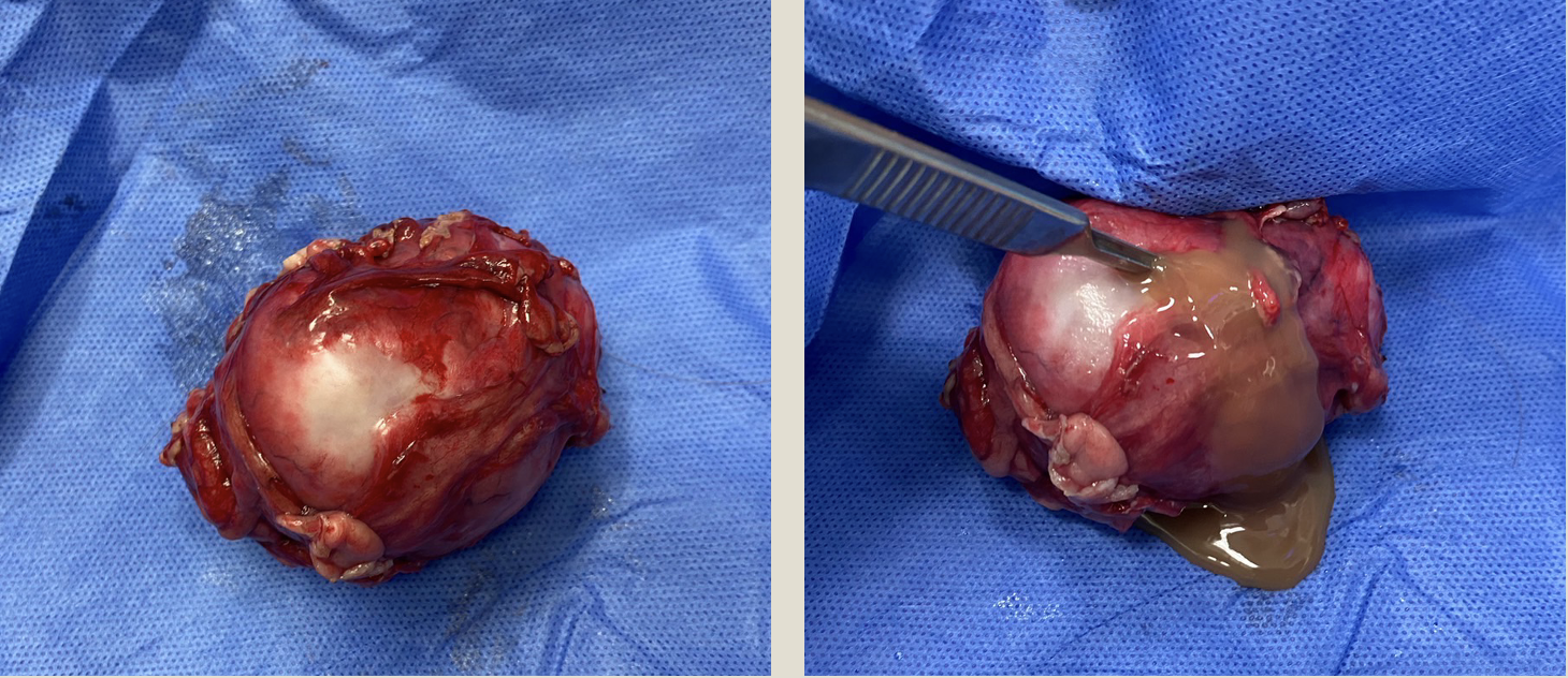 開腹手術により膵嚢胞を切除した