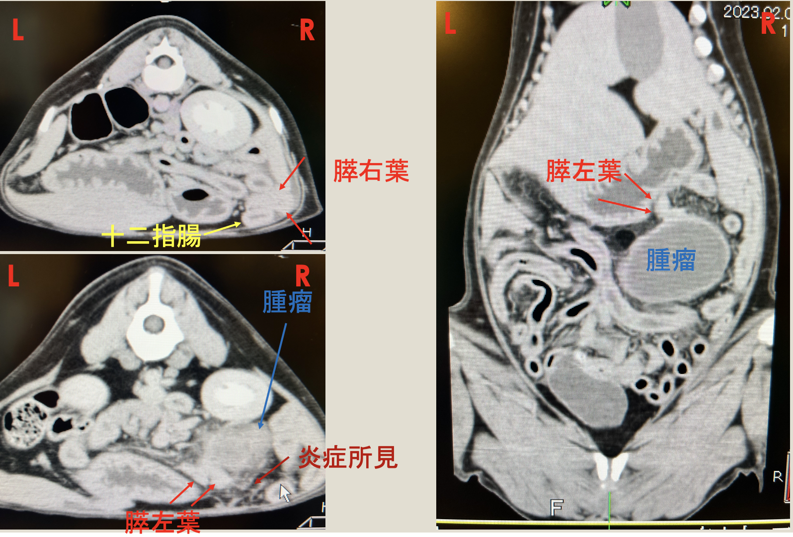 超音波検査、CT検査より膵臓周囲に腫瘤