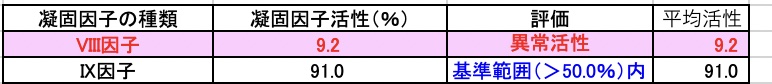 犬の凝固因子活性は人とは異なるので専門の検査機関での検査が望ましく、今回は大学病院に検体を送り検査していただきました。検査の結果、第Ⅷ因子の凝固活性が著しく低下しており血友病Aとの診断でした。