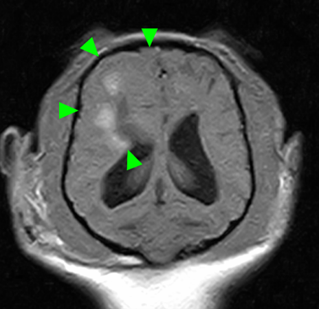 MUOの症候は、病変の主座(前脳、脳幹、小脳など)と分布(局在性か多発性か)に強く依存します。臨床では、けいれん、意識レベルの低下、旋回、運動失調、姿勢反応低下、脳神経症状などが問題となり得ます。経過も多彩で、急速に悪化する例がある一方、一定期間の安定と再燃を繰り返す例もあります。