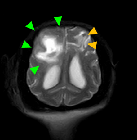 初診から4か月後に重積発作で来院されたため、MRI検査を実施。